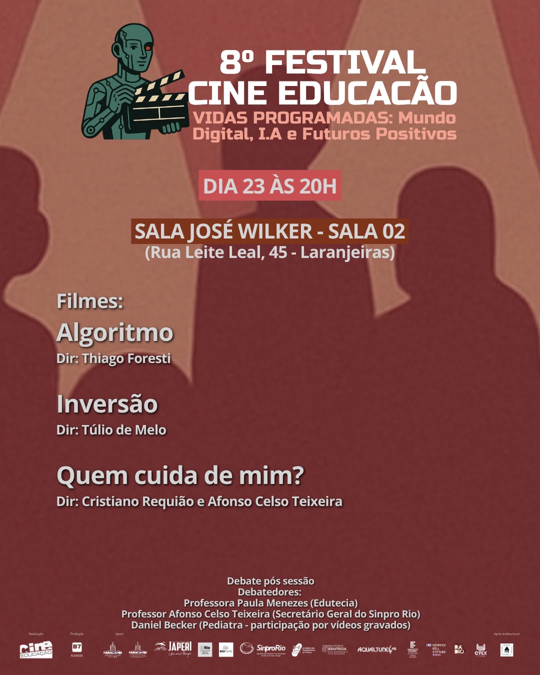 Após as sessões, será realizado um debate sobre os filmes exibidos com cineastas e professores.