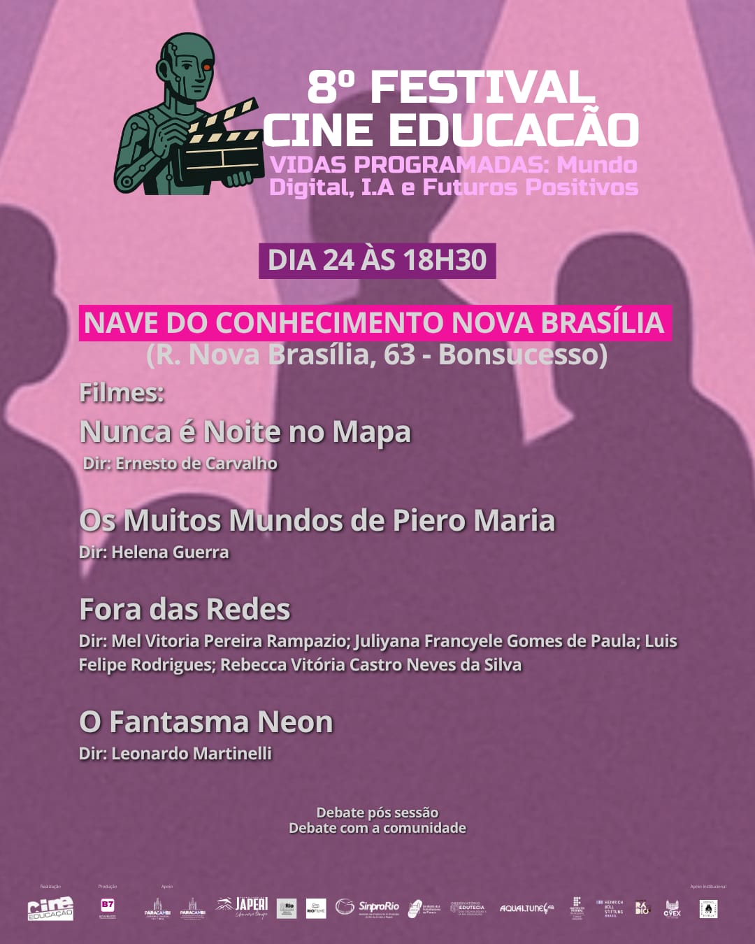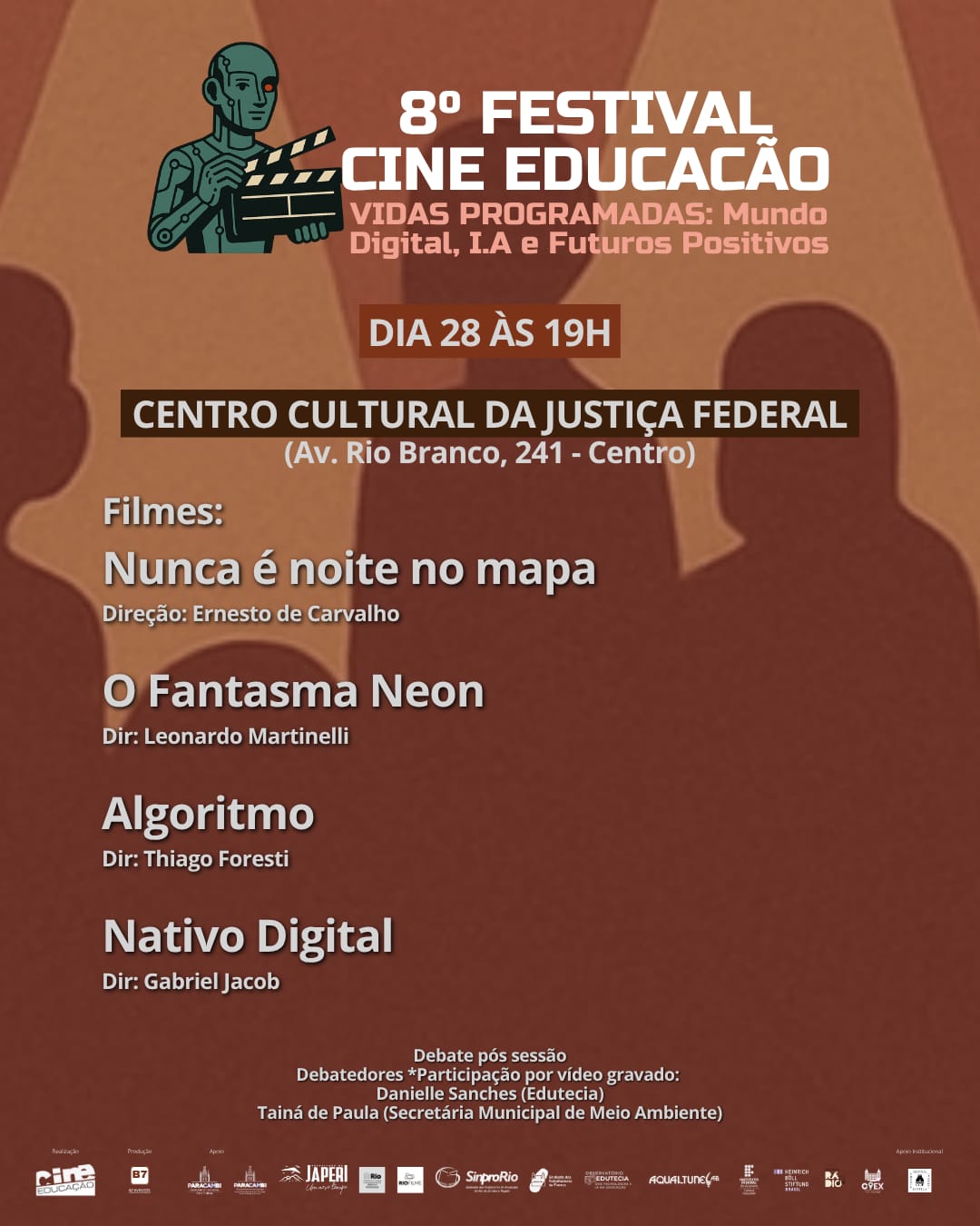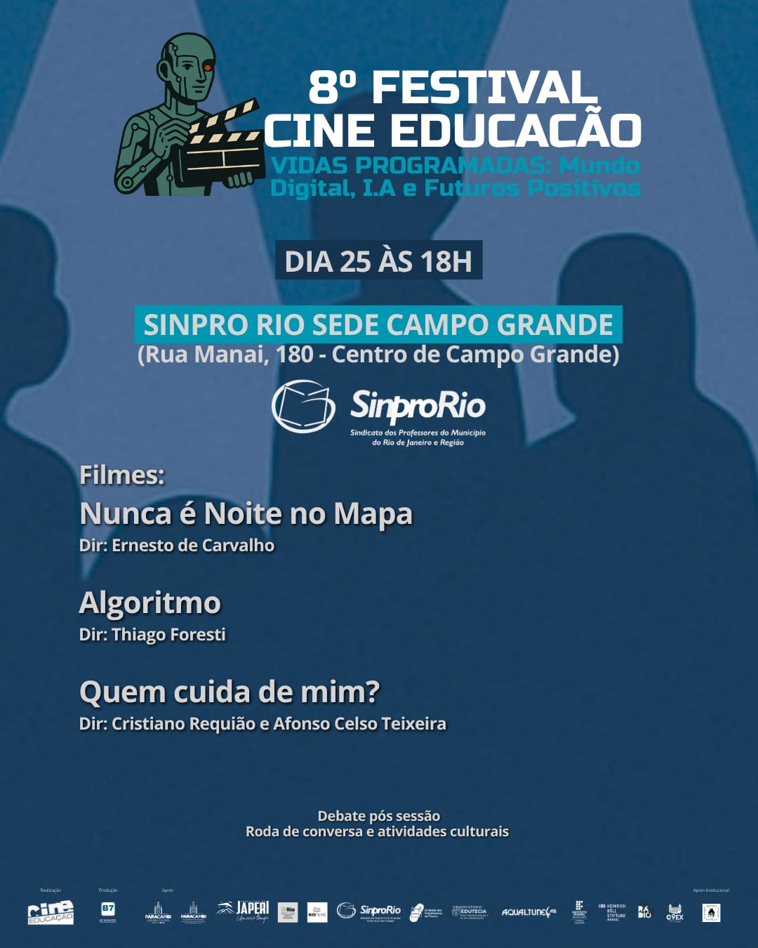 ­O 8º Festival Cine Educação, que acontece desde o dia 21 e vai até 30 de outubro de 2025, já é o maior encontro realizado pelo projeto de incentivo ao desenvolvimento do audiovisual, Cine Educação. A temática escolhida para este ano é Inteligência Artificial. A cerimônia de abertura acontece hoje, às 20h, no CineCarioca José Wilker em Laranjeiras.